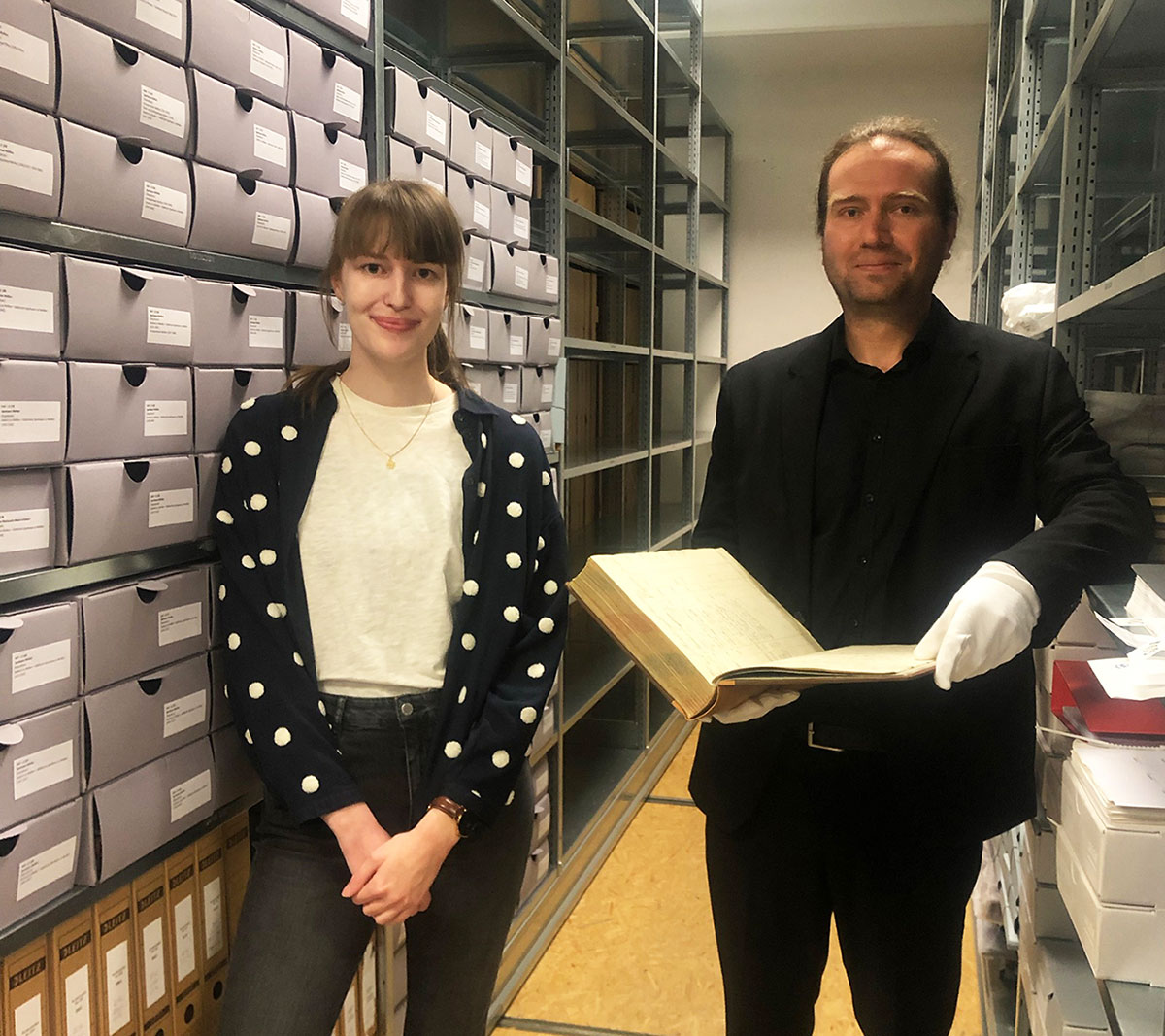 • Saskia Brunst und Thomas Einert im Archivmagazin : © Historisches Archiv des OSV