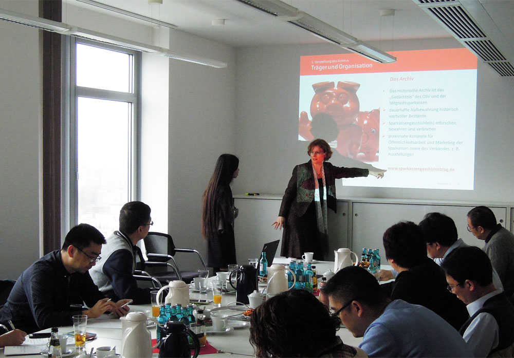 Nicht alle Tage kommt es vor, dass man im eigenen Haus, ja, sogar im eigenen Archiv, ausländische Gäste begrüßen darf. Umso mehr freuten wir uns über das Interesse einer Archivdelegation aus Shanghai an unserem Historischen Archiv und seinen Dienstleistungen für die Sparkassen.