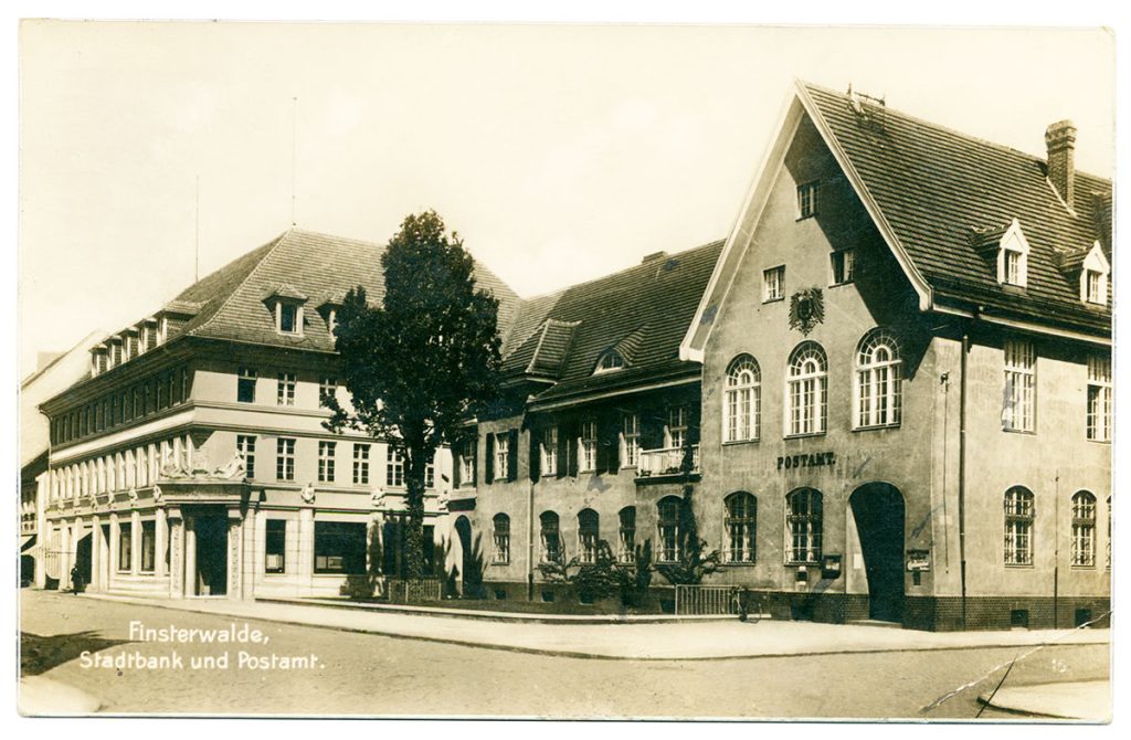 Vor kurzer Zeit hat der Ostdeutsche Sparkassenverband seinen Jahresbericht für 2023 online veröffentlicht. Auch das Historische Archiv wurde bedacht und taucht hier mit drei Projekten des vergangenen Jahres auf. Als großes Titelbild begegnet uns der historische Sitz der Sparkasse Elbe-Elster in Finsterwalde. Diese Postkarte wurde 1929 versendet. Da war das Gebäude links ganz neu. Am 18. Juni 1928 konnte die Stadtspar- und Girokasse Finsterwalde dort einziehen.