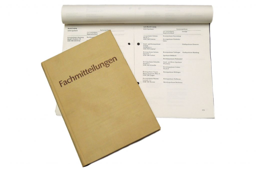 **Protokoll der Arbeitsberatung der Direktoren der Sparkassen des Bezirkes Leipzig, 05.04.1990. In: Geiger, Walter ; Günther, Hans Georg: Neugestaltung des ostdeutschen Sparkassenwesens 1990 bis 1995, Stuttgart 1998, S. 161.
