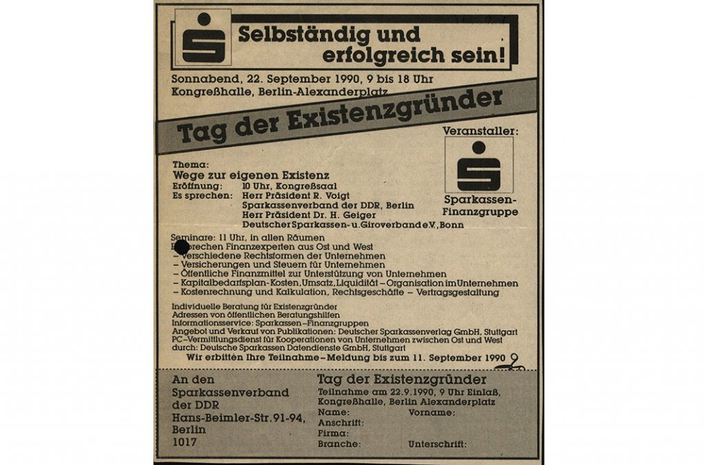 Heute vor 30 Jahren fand in der Kongresshalle am Alexanderplatz in Berlin ein vielbeachtetes und von allen Seiten gelobtes Event statt. Beate Martin, seinerzeit Verbandsdirektorin für Kredite des Ostdeutschen Sparkassen- und Giroverbandes und Mitorganisatorin, fasst den Tag wie folgt zusammen:
