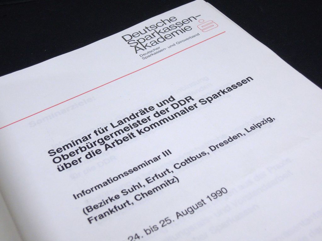 Zwischen dem 21. und 25. August 1990 finden in Berlin jeweils drei zweitägige Informationsseminare für Oberbürgermeister und Landräte der DDR statt, um sie auf die künftige Rolle als Vorsitzende der Verwaltungsräte ihrer örtlichen Sparkasse vorzubereiten. Der Präsident des Sparkassenverbandes der DDR, Rainer Voigt, verdeutlicht das Ziel der Veranstaltungen im Interview mit der Berliner Zeitung: