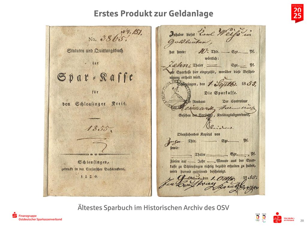 Im kommenden Jahr feiert die Sparkasse Muldental ihr 200-jähriges Bestehen. Das Historische Archiv des OSV unterstützt das Jubiläum auf verschiedene Weise. So soll etwa eine Ausstellung zur Geschichte des Unternehmens gestaltet werden. Dies bedeutet zunächst das Sammeln von interessanten Fakten und Bildern. Recherchiert wird unter anderem vor Ort in Sachsen, zum Beispiel im Staatsarchiv in Dresden und Leipzig sowie in Stadtarchiven. Die bedeutendsten Funde gibt es jedoch im Sparkassenmuseum Muldental.