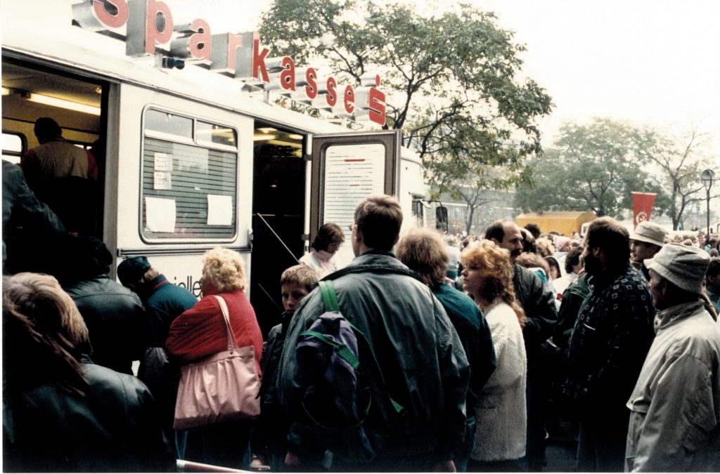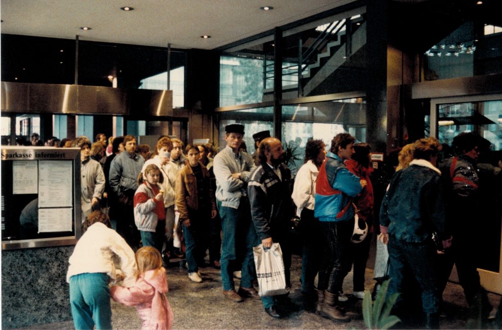 Mauerfall und Begrüßungsgeld – Der große Ansturm auf die Zweigstellen der Sparkasse in Berlin