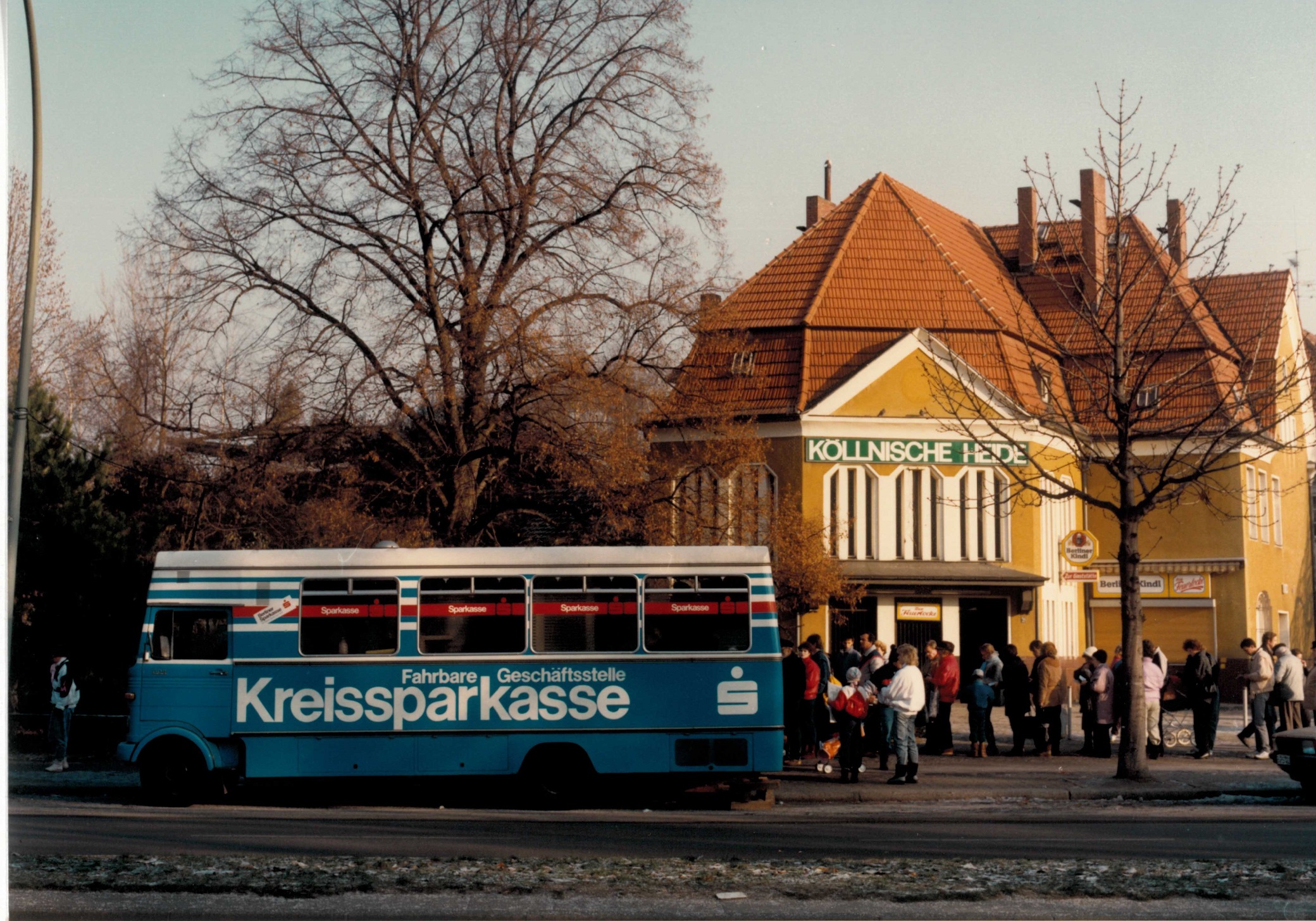 Am größten ist der Andrang in Zweigstellen, die in der Nähe von Grenzübergängen liegen. Auch Zweigstellen, die zentral gelegen und gut mit öffentlichen Verkehrsmitteln zu erreichen sind, wie zum Beispiel am Zoologischen Garten, werden stark frequentiert. An der Gedächtniskirche kommt auf dem Breitscheidplatz zur Entlastung der dortigen Zweigstelle zusätzlich ein Bus der West-Berliner Sparkasse für die Auszahlung des Begrüßungsgelds zum Einsatz. Die Öffnungszeiten der Zweigstellen werden verlängert. Teilweise sind sie bis spät abends und darüber hinaus auch an den Wochenenden geöffnet. Viele Mitarbeiter aus den zentralen Abteilungen helfen aus. Eine große Herausforderung stellt auch die Versorgung der Zweigstellen durch die Sparkassenzentrale mit Bargeld dar. Aber alles läuft ohne größere Probleme ab und wird von einer großen, einmaligen Euphorie getragen.