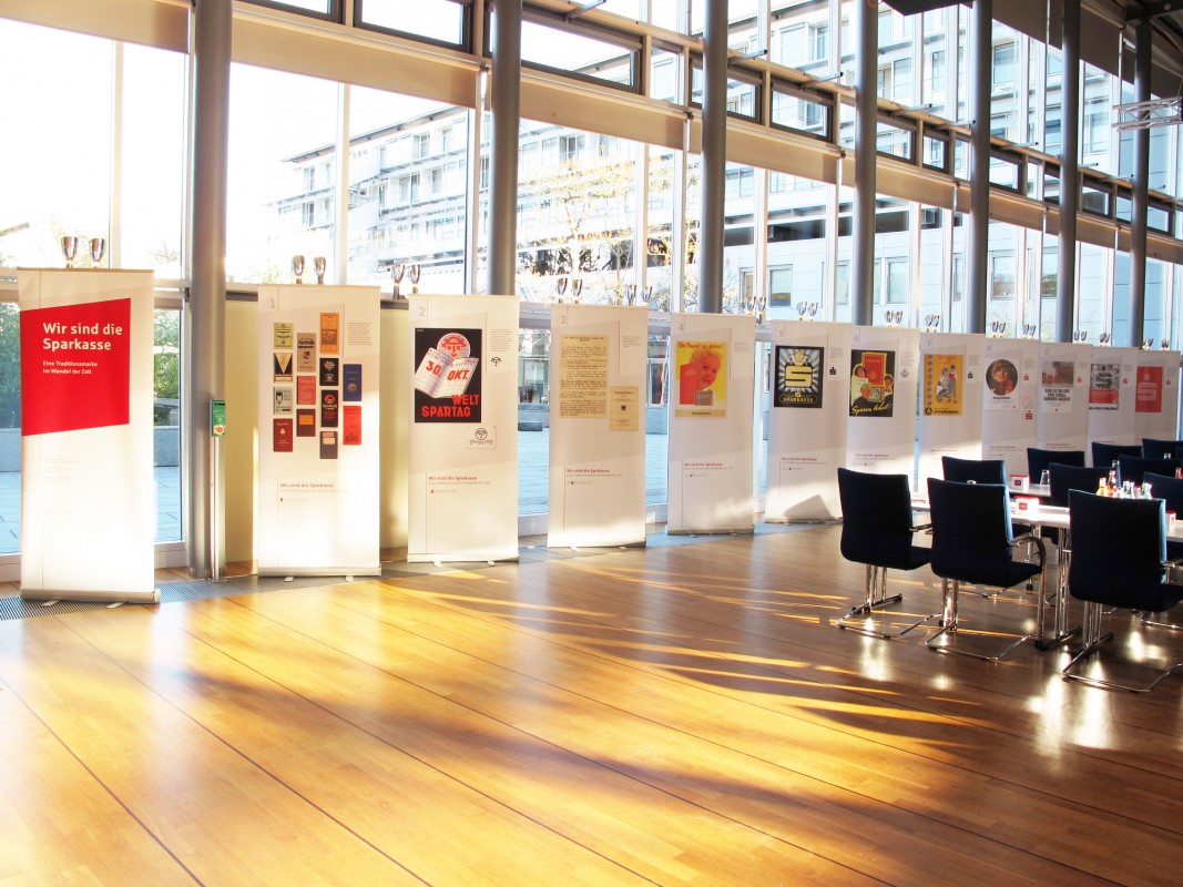 Grund genug für das Historische Archiv des Ostdeutschen Sparkassenverbandes der Geschichte der „Marke Sparkasse“ nachzuspüren. Im Ergebnis entstand für in- und externe Veranstaltungen eine kleine Schau. Kurzweilig wird anhand der Sparkassenwerbung auf 12 Tafeln gezeigt, wie sich die „Marke Sparkasse“ bis heute entwickelt hat. Spielerisch ergänzt wird die Ausstellung durch das Kleben und Stempeln des Sparkassen-Logos auf Postkarten. Auch dieses veränderte sich im Laufe der Zeit und erzählt Geschichte(n) aus verschiedenen Epochen.