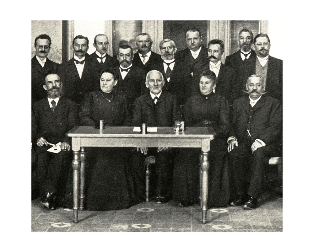• Nur wenige Frauen verwalteten damals Nebenstellen, wie z. B. Hedwig Ancker (Inhaberin einer Drogen-, Farben- und Parfümeriehandlung) und Marta Holtfeuer (Weinhändlerin). (Abb. in: Petersilie, Erich: Die Sparkasse des Kreises Teltow von 1858-1908, Berlin, 1908; Bestand: Historisches Archiv des OSV)