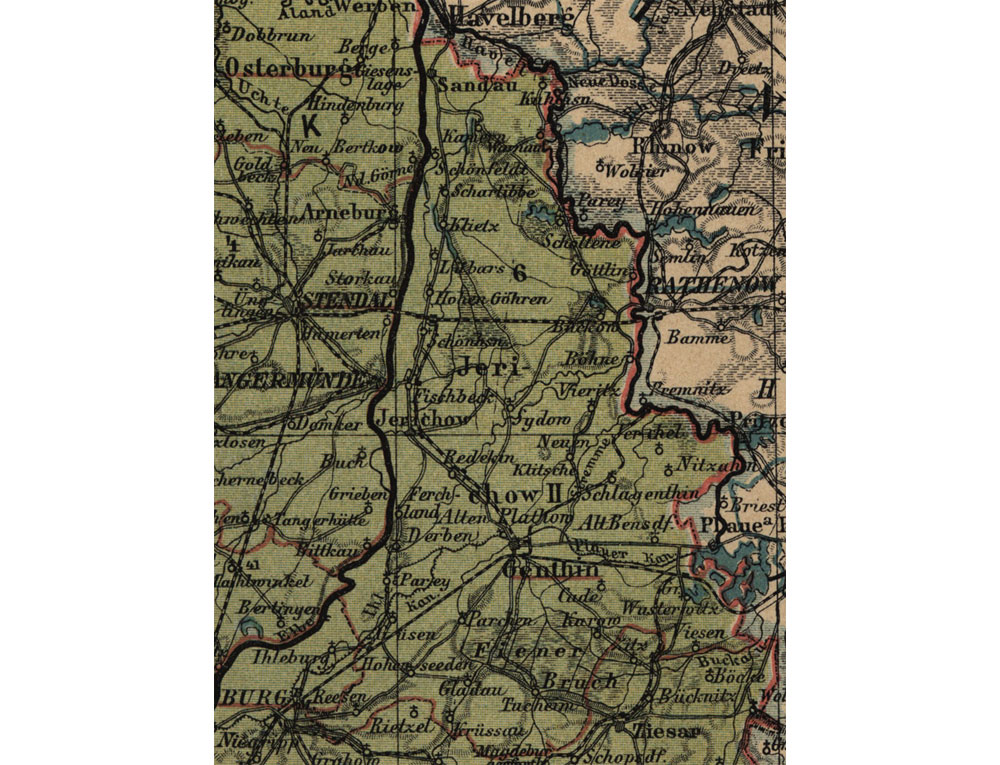 • Finden Sie die Orte im Gebiet des Kreises Jerichow 2? (Abb. Auschnitt Landkarte der preuß. Provinz Sachsen, 1912; Bestand: historisches Archiv des OSV)