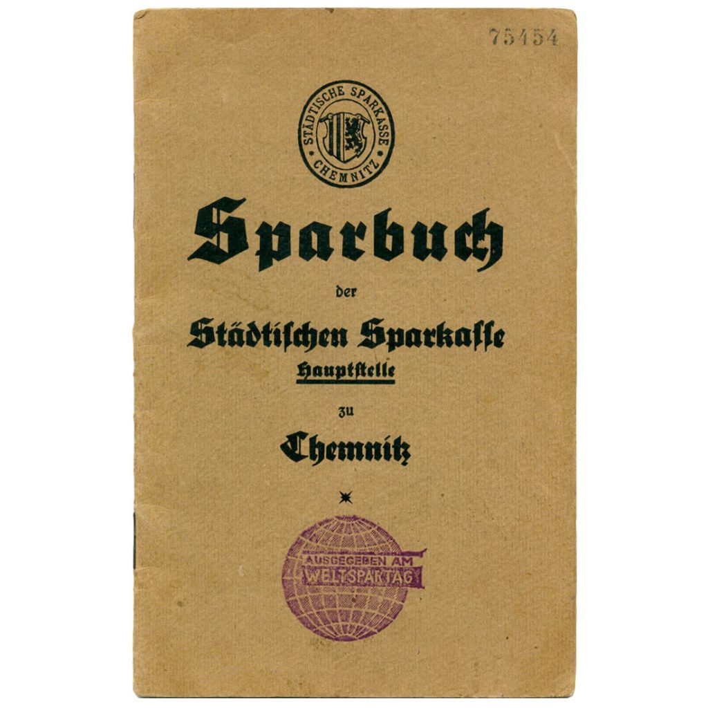 Den für heute vom Deutschen Sparkassen- und Giroverband proklamierten Weltspartag nehmen wir zum Anlass, diesen Tag am 29. Oktober 1932 in Chemnitz zu betrachten. An diesem Weltspartag wurden die ausgegebenen Sparbücher mit einem besonderen Stempel versehen, dem Weltspartagstempel. Eines dieser Sparbücher befindet sich im Bestand des Historischen Archivs des OSV und ist oben abgebildet.