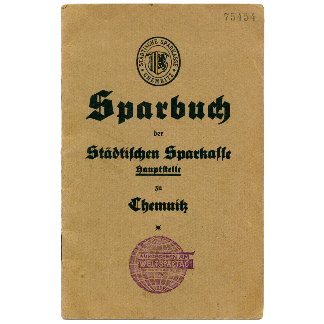 Im Geschäftsbericht der Städtischen Sparkasse zu Chemnitz für das Jahr 1932 wurden die Werbetätigkeiten, wie die Verwendung des Weltspartagstempels, der Sparkasse in Chemnitz dargestellt: