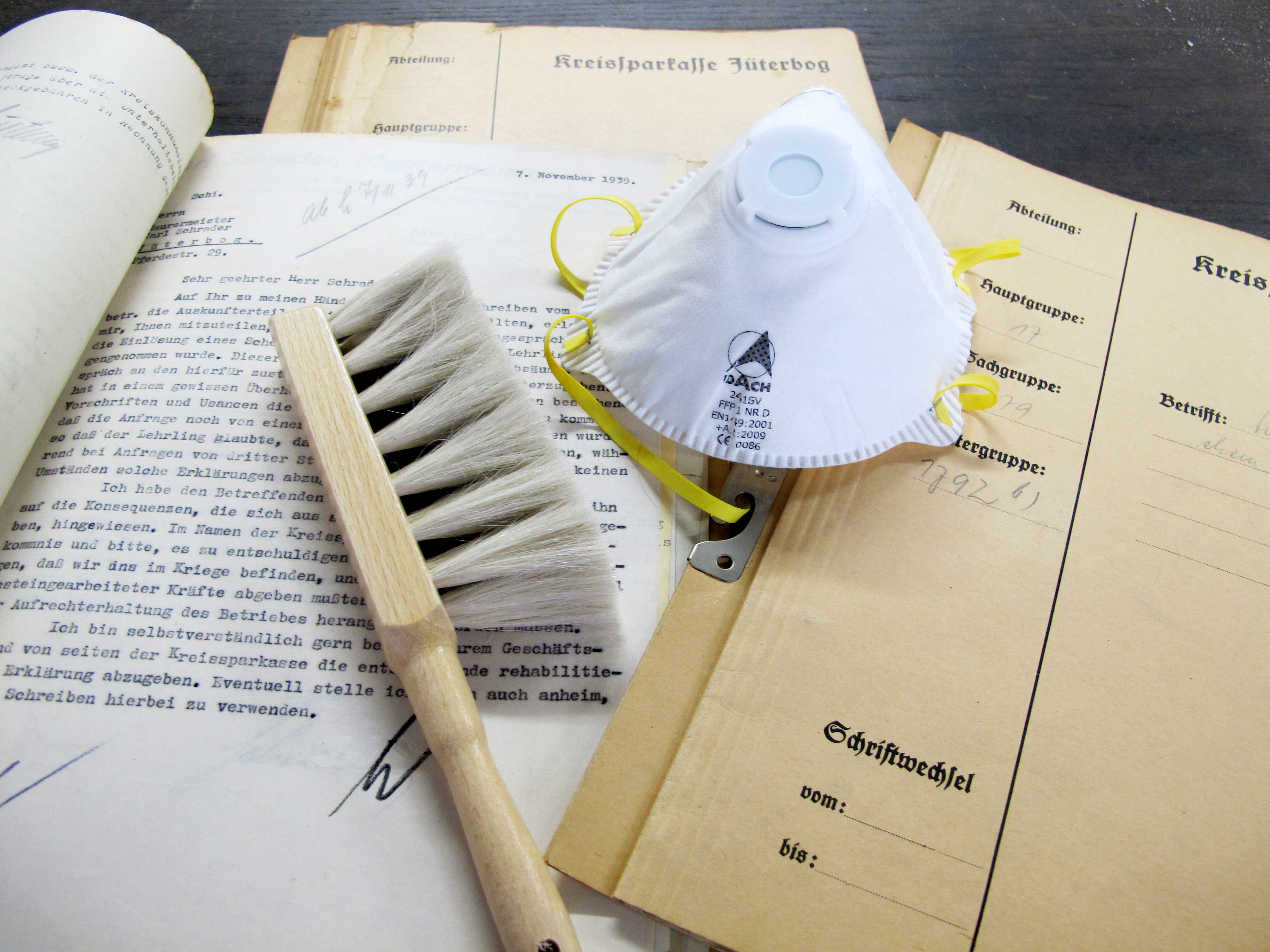 Mit Schutzausrüstung und Ziegenhaarbesen – Archivberatung ganz praxisnah