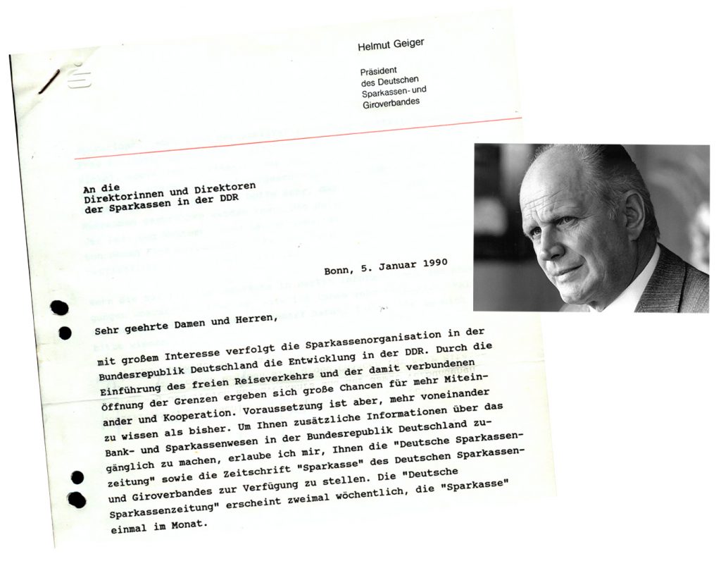 Außerdem sollen die DDR-Sparkassen Hilfe beim Aufbau eines Bausparkassensystems und einer Zentralbank erhalten sowie werbliche Unterstützung, „um möglichst rasch ein neues, vertrauensbildendes Image aufzubauen.“
