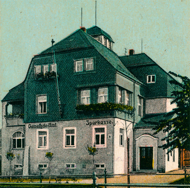 In Bad Schlema befindet sich heute eine BeratungsFiliale der Erzgebirgssparkasse. Bereits am Anfang des 20. Jahrhunderts gab es hier Sparkassenstandorte. Zu dieser Zeit hatten viele kleine Gemeinden ein eigenständiges Geldinstitut. Flächensparkassen mit Zweigstellen gab es im damaligen Königreich Sachsen nicht. Gemeindeverbandssparkassen waren kaum verbreitet. In Niederschlema eröffnete am 2. Januar 1903 eine Sparkasse. Am 20. Oktober 1904 folgte die Sparkasse Oberschlema. Das Motiv einer vor 100 Jahren versandten Postkarte zeigt uns ihren damaligen Sitz. 1918 ist ein bemerkenswertes Jahr in der Ortsgeschichte. Damals wurde in Oberschlema ein Radiumbad eröffnet. Die Entwicklung zu einem renommierten Badeort begann.