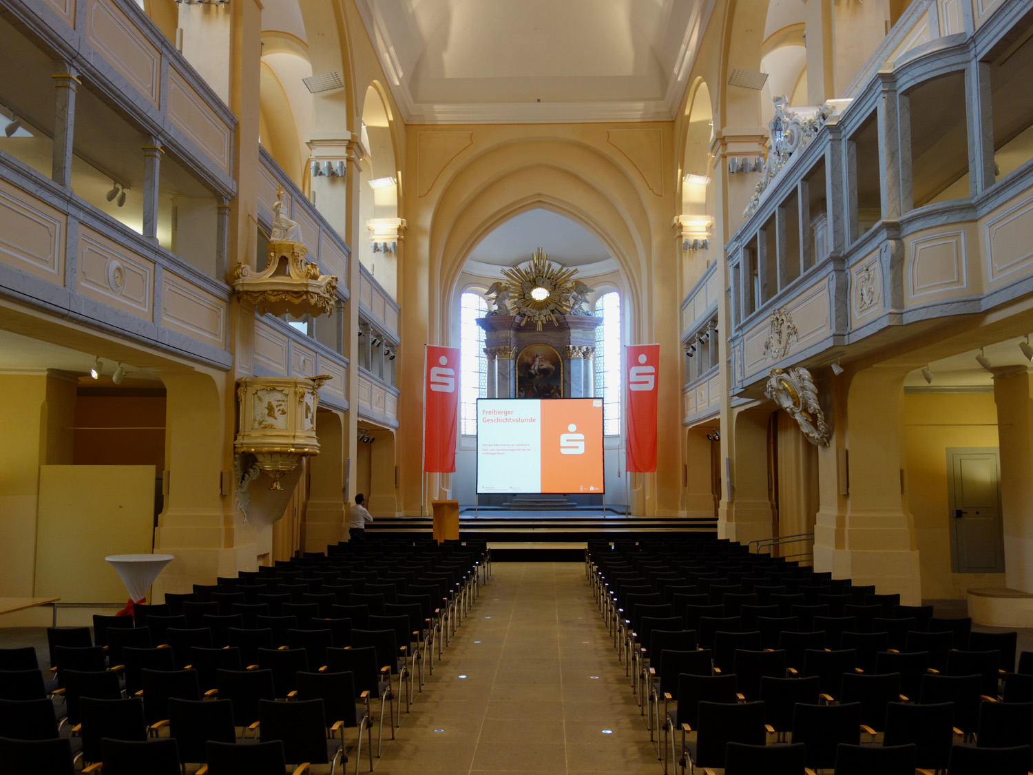 Gestern war es soweit: Freiberger Geschichtsstunde in der Nikolaikirche. Viel Zeit hatte ich in die Vorbereitung der Bilderpräsentation investiert, die die Geld- und Sparkassengeschichte thematisierte. Eine ganze Menge Silber stand digitalisiert und grafisch „aufpoliert“ für die Freibergerinnen und Freiberger bereit. Von mehreren Währungen, mit denen die regionale Sparkasse in ihrer Geschichte schon zu tun hatte, wurde berichtet. Vom Taler aus dem Gründungsjahr der Sparkasse 1823 bis zum Euro ging die historische Bilderreise. Parallel referierte Frau Dr. Indra Frey, Pressesprecherin der Sparkasse Mittelsachsen, über die Entwicklung der Sparkasse vor Ort. Auch diesen Teil konnte ich mit allerhand buntem Bildmaterial aus dem Historischen Archiv des OSV unterstützen.