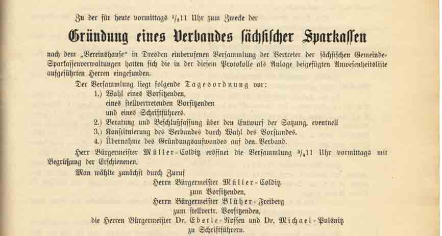 > Zusammenschluss sächsischer Gemeinden zur gegenseitigen Bewilligung von Krediten, die in den Kommunen zur Deckung eines durch starken Bevölkerungswachstum hervorgerufenen, hohen Investitionsbedarfs benötigt werden