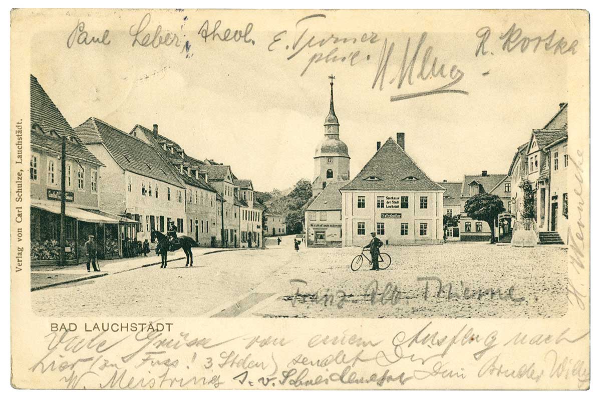 Das Historische Archiv des Ostdeutschen Sparkassenverbandes verfügt über eine große Sammlung von Ansichtskarten mit Abbildungen historischer Sparkassen. Da finden sich auch einige Kuriositäten, zum Beispiel dieses vor genau 100 Jahren versendete Exemplar. Kennen Sie Lauchstedt? Das ist eine Stadt mit langer Geschichte, die gleich mehrfach ihren Namen änderte.