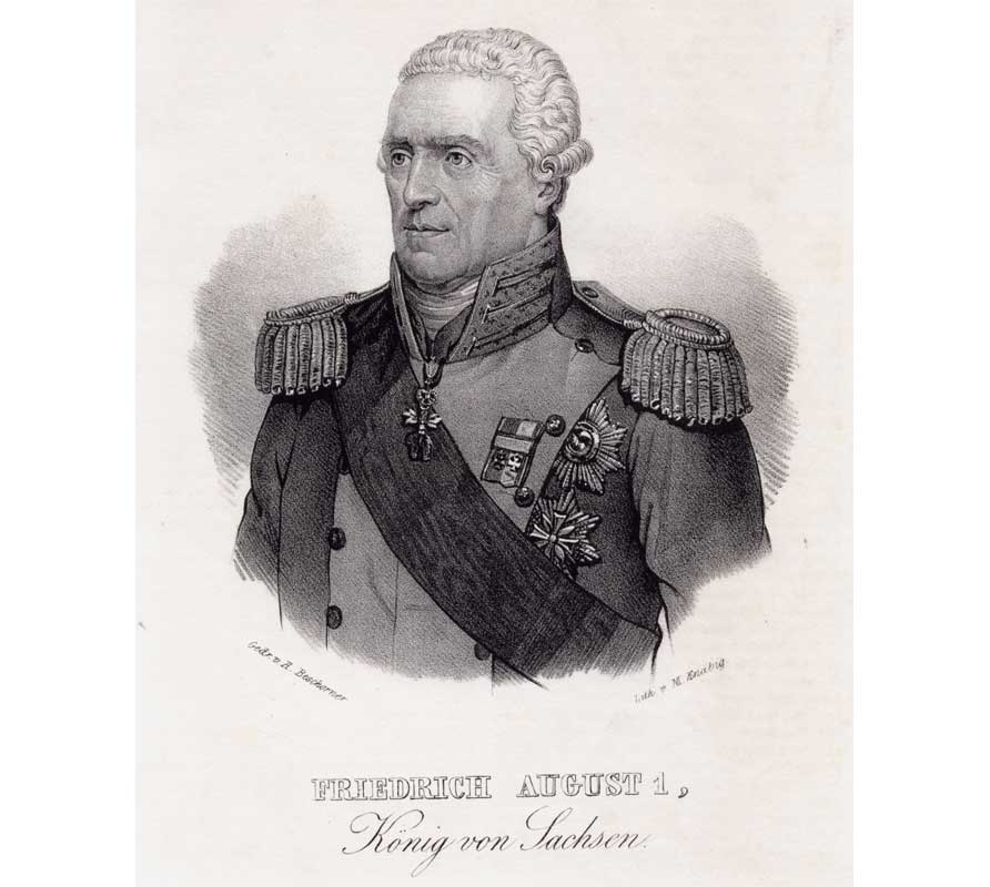 Friedrich August I. musste vor 200 Jahren einen großen Teil seines Landes an Preußen abtreten. Lithografie von Maximilian Knäbig, um 1840 : © Historisches Archiv des OSV