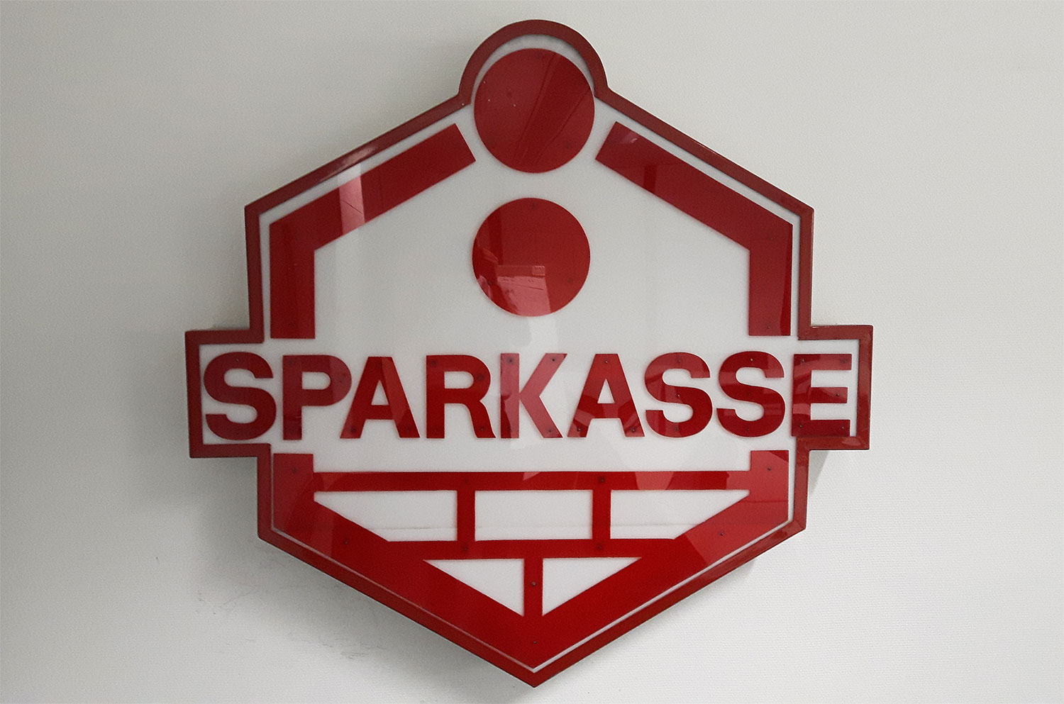 Das großformatige Leuchtschild der Zweigstelle 195 in der Wiltbergstraße 5 im Pankower Ortsteil Buch ist erhalten geblieben und gehört heute zum Bestand des Historischen Archivs der Berliner Sparkasse. Das imposante Unternehmenszeichen hat eine Höhe von 126, eine Breite von 130 und eine Tiefe von 16 Zentimetern. Innen ist es zur Beleuchtung mit mehreren Leuchtstoffröhren ausgestattet. Es hat die Form einer Bienenwabe. Gleichzeitig erinnern zwei in die Wabe hineinfallende Münzen an eine Spardose. Im unteren Drittel der Wabe symbolisieren Mauersteine die Aufbaujahre, in der Mitte ist die Wabe mit dem Schriftzug „Sparkasse“ versehen. Das Motiv ist im roten Farbton auf weißen Grund gezeichnet. Das Sparkassenlogo der DDR geht auf den Grafiker Siegfried Riediger zurück, der es 1957 entworfen hat.