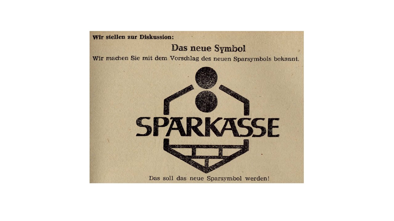 • 1957 stellen die "Blätter der Sparkassenpraxis" das neue Logo von Siegfried Riediger zur Diskussion. Es ist einfach, übersichtlich und einprägsam, kann beliebig verkleinert und vergrößert sowie in jedem Material ausgeführt werden, heißt es seinerzeit. Verwendung soll es unter anderem als Neonbeleuchtung an den Vorderfronten, auf Transparenten, Werbeaufstellern und Vordrucken finden. : © Historisches Archiv des OSV