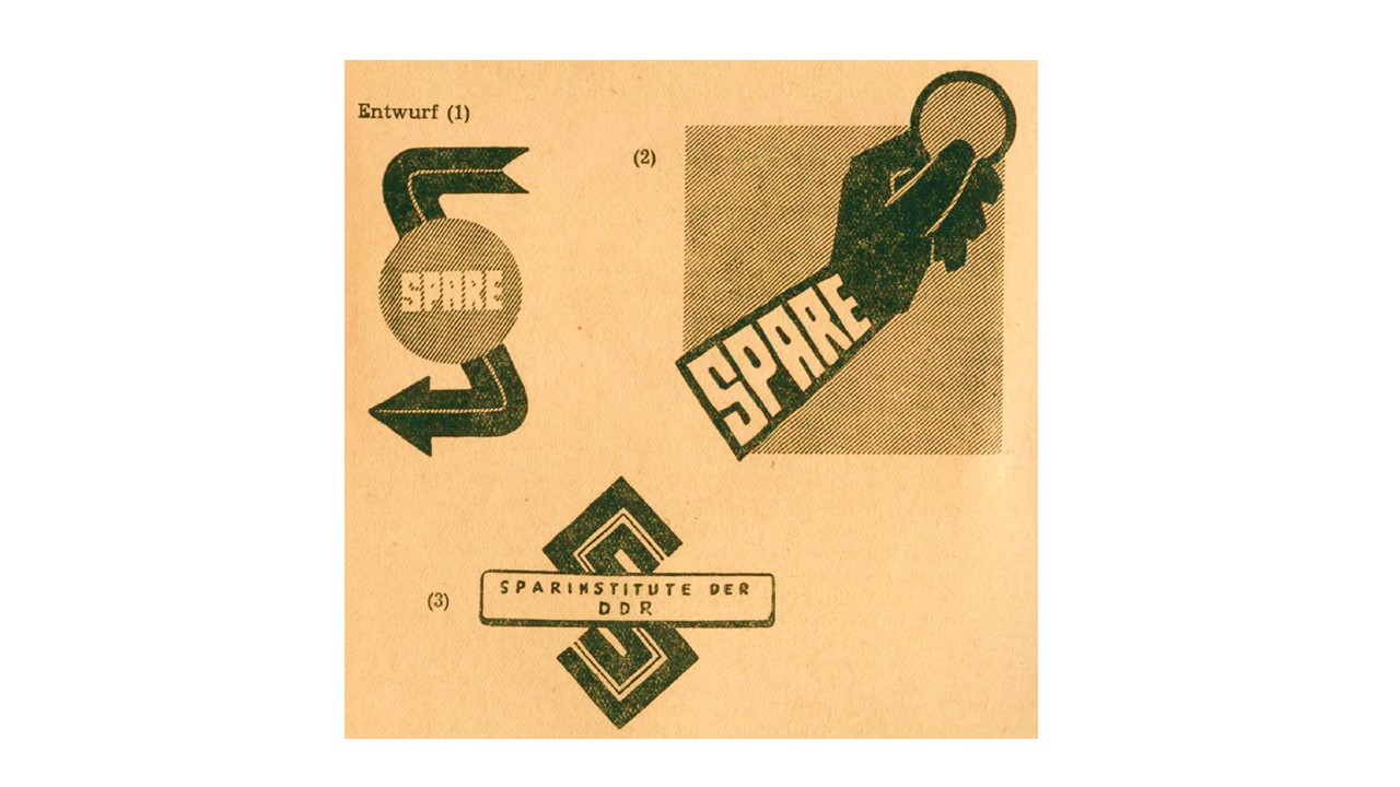 • Ein Jahr zuvor berichten die "Blätter der Sparkassenpraxis" von einer schon länger bestehenden Diskussion über die Notwendigkeit und Nützlichkeit eines Sparsymbols. Es sollte ein sinnvolles, ständig wiederkehrendes, aber auch formschönes Zeichen sein, das zur Popularisierung des Spargedankens beitrug. Für die Beschäftigten in den DDR-Sparkassen erfolgte ein Preisausschreiben, denn man war mit den bisherigen Entwürfen von beauftragten Grafikern noch nicht zufrieden (im Bild 1-6). : © Historisches Archiv des OSV