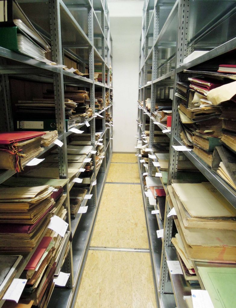 • Sortierung des Literaturbestandes nach selbstgewählten Rubriken im Magazin des Archivs : © Historisches Archiv des OSV