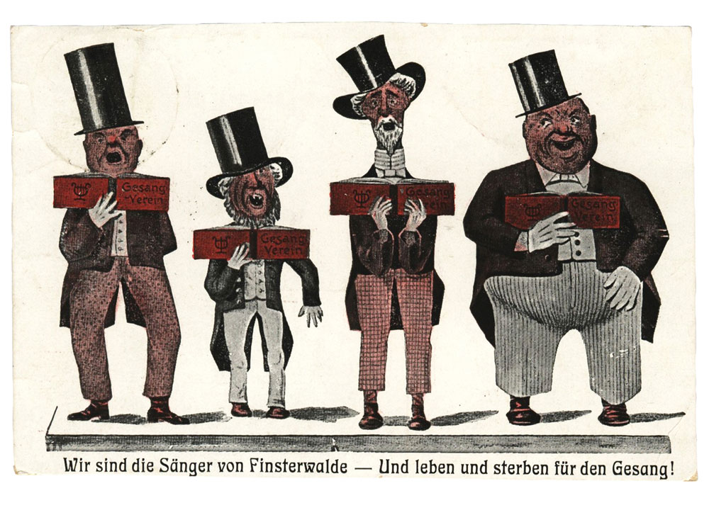 Seit drei Jahren führt Finsterwalde in Südbrandenburg nun schon die offizielle Bezeichnung „Sängerstadt“. Zurück geht der Titel auf einen Schlager, den der Berliner Komponist und Theatermacher Wilhelm Wolff 1899 für seine Burleske „Die Sänger von Finsterwalde“ schrieb. Das Lied wurde schnell sehr bekannt in Deutschland. Finsterwalde war in aller Munde. Popularität erlangten auch die zahlreichen Postkarten, die die Sänger als ziemlich schräge Typen darstellten.