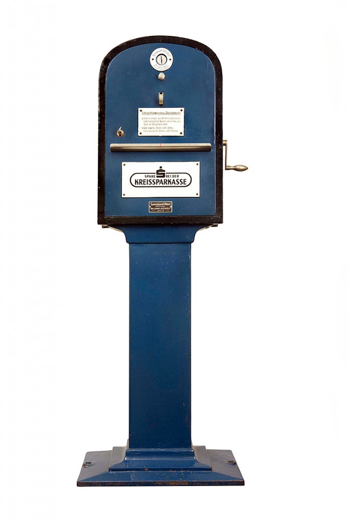 * Einen Stand-Sparautomaten aus späterer Zeit haben wir, voll einsatzbereit, im Archivbestand. Sie sehen ihn als Bild 2 dieses Beitrags.