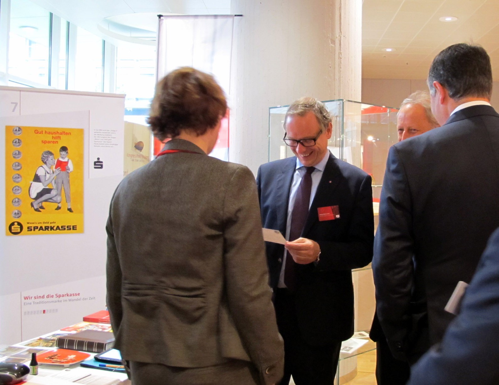 Kurz vor seiner Rede besuchte DSGV-Präsident Fahrenschon den Stand des Historischen Archivs des OSV. : © Historisches Archiv des OSV