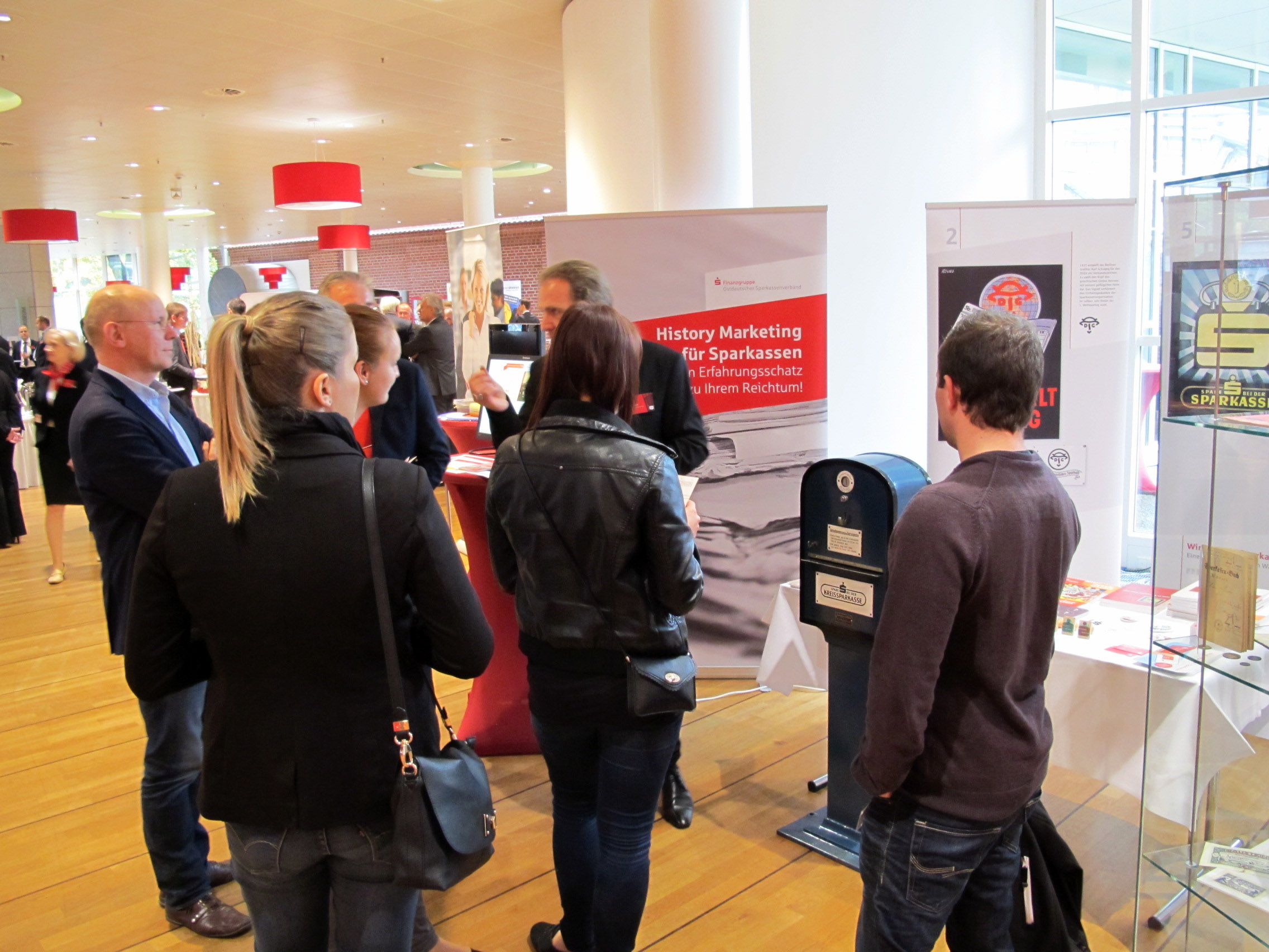 Im Laufe der gesamten Veranstaltung traten viele Sparkassenkollegen an unsere Tische – schauten, testeten, fragten nach und hörten sich unsere Ideen zum History Marketing interessiert an.  Die vielen neuen Kontakte, die wir knüpfen konnten, werden wir pflegen, ausbauen und mit Sparkassengeschichte(n) „füttern“.