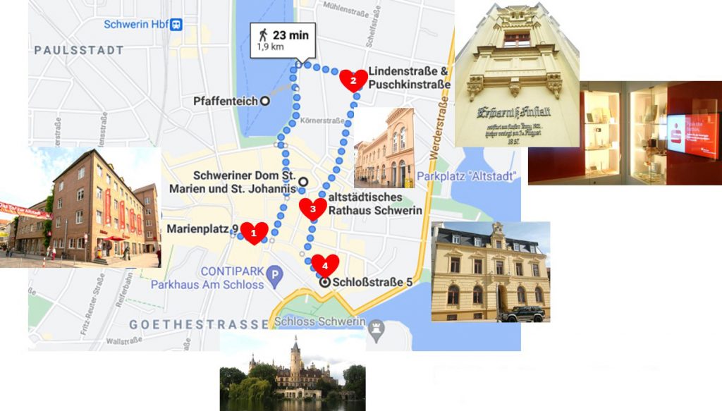 In Corona-Zeiten ist es wahrlich nicht einfach, unterwegs zu sein, geschweige denn, Kultureinrichtungen zu besuchen. Doch ein historischer Stadtrundgang ist immer möglich. Wir haben für Sie anlässlich des Geburtstages der ältesten mecklenburgischen Sparkasse am 5. Juni einen Spaziergang zusammengestellt, der Sie auf die Spuren von Sparkassengeschichte(n) aus 200 Jahren führt: