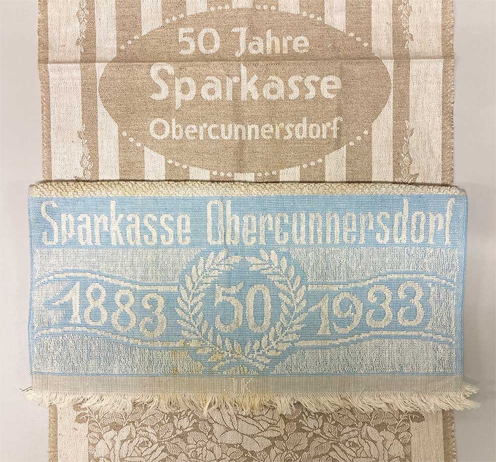 • Tischläufer und Handtuch der Sparkasse Obercunnersdorf von 1933 : © Historisches Archiv des OSV