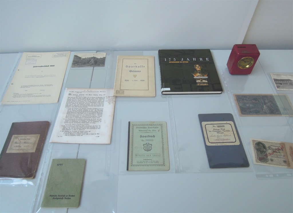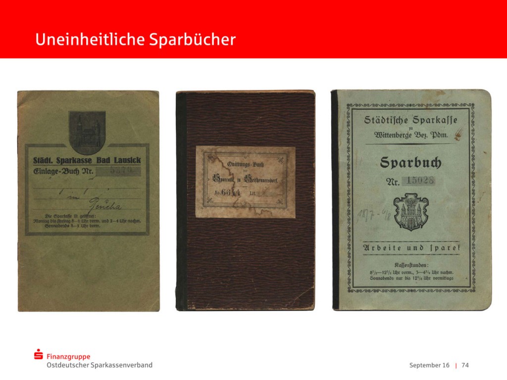 • Dass Sparkassenbücher vor ihrer Vereinheitlichung nicht nur unterschiedlich farbig waren, sondern auch verschiedene Bezeichnungen führten, erfuhren Auszubildende gestern. : © Historisches Archiv des OSV