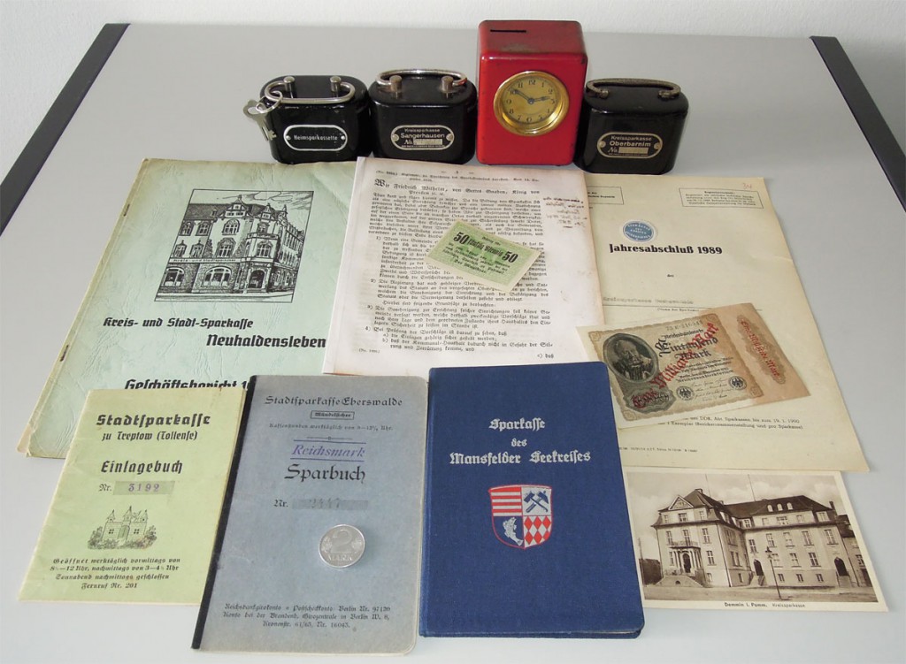 Unter anderem hat uns der Bürgermeister von Ueckermünde, Jürgen Kliewe, mit Bildmaterial unterstützt. Bei Abbildungen aus dem Bestand der Sparkasse und des OSV-Archivs sind keine Quellen ausgewiesen. Zum Einsatz kam wieder unsere Postkartensammlung. Die zwei Rathäuser in Pasewalk und Strasburg (Uckermark), welche die örtlichen Sparkassen beherbergten, gibt es heute leider nicht mehr. Sie wurden am Ende des Zweiten Weltkrieges zerstört. Wenn’s um Geld ging … Sparkasse. Alle gezeigten Zahlungsmittel, vom Preußen-Taler bis zum Euro-Starterkit, gehören zu unserem Archivbestand.