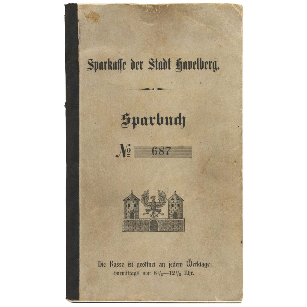 Vor genau 170 Jahren eröffnete Havelberg in Brandenburg eine eigene Sparkasse. Brandenburg? Ja, bis zur Gebietsreform in der DDR 1952 gehörte die Stadt zu diesem Land und zwar zur Prignitz. Seit 1990 liegt sie nun in Sachsen-Anhalt. Auf die historische Zugehörigkeit zum Nachbarland verweist noch heute das fast 400 Jahre alte Stadtwappen. Es ziert der märkische Adler. Dieser schwebt zwischen zwei Türmen über dem geschlossenen Tor der Stadtmauer. Das brandenburgische Wappentier findet sich auch auf zwei alten Havelberger Sparkassenbüchern in unserem Archivbestand. Das dekorativere Exemplar sehen Sie hier.