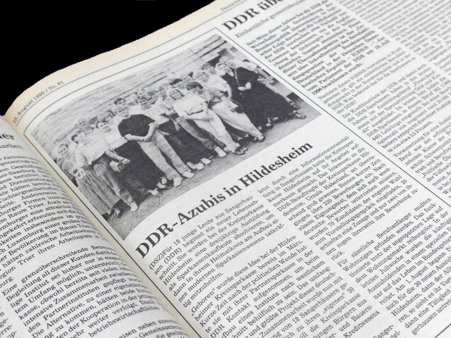 ******** Vgl. DDR-Azubis in Hildesheim, in: Deutsche Sparkassenzeitung, Nr. 61, 10.08.1990, S. 5.