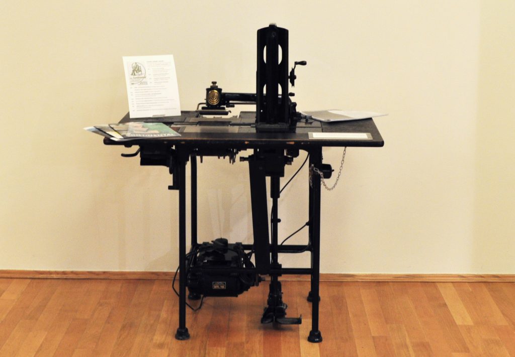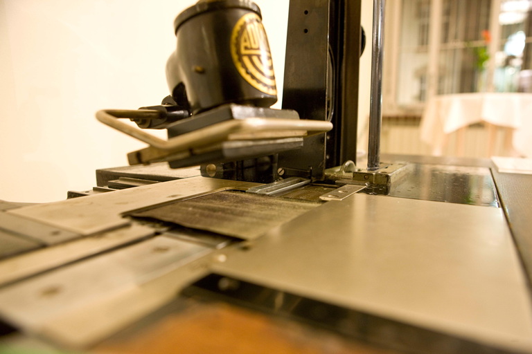 • Die ADREMA ganz nah: Der Druckarm und das darunter befindliche Farbband sind gut zu erkennen. Dazwischen legte man das zu bedruckende Dokument. Unter dem Farbband lag die Metallplatte und wartete auf ihren Einsatz. : © Frank Ossenbrink