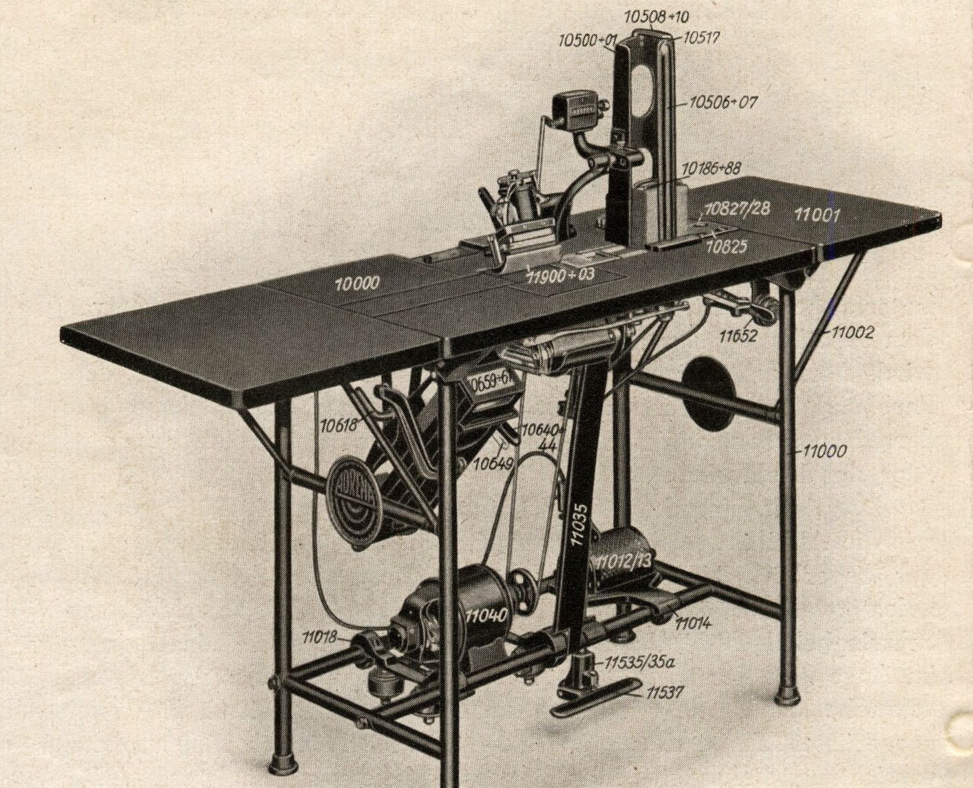 Die Zeichnung ist aus einer Gebrauchsanweisung zur ADREMA und zeigt ein Modell der 1930er-Jahre. Links (mit 10508 bezeichnet) befindet sich der Einlegeschacht für die Metallplatten bzw. Matrizen.